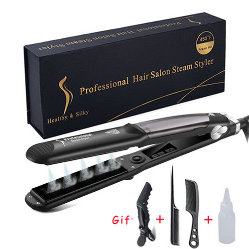 Professional Hair Straightener: Argan Oil Steam Flat Iron